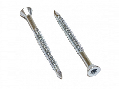 Стандартный крепеж состоит из навершия и стержня. Навершие имеет коническую форму, ориентировано на головку Torx-10. Стержень частично покрыт резьбой. На его конце присутствует сверло, упрощающее работу с твердыми породами дерева.