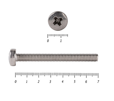 Винт с полукруглой головкой - это стальной стержень с полной метрической резьбой. Существует два варианта исполнения - с прямым шлицем и с крестообразным. Полукруглая головка обеспечивает лёгкий захват простой отверткой.