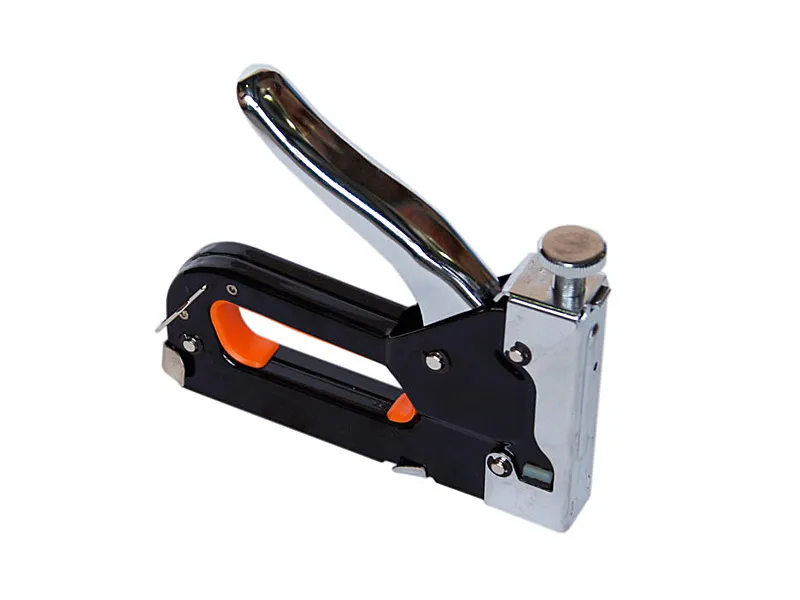 Металлический регулируемый мебельный степлер изготовлен из хромованадиевой стали, окрашен.